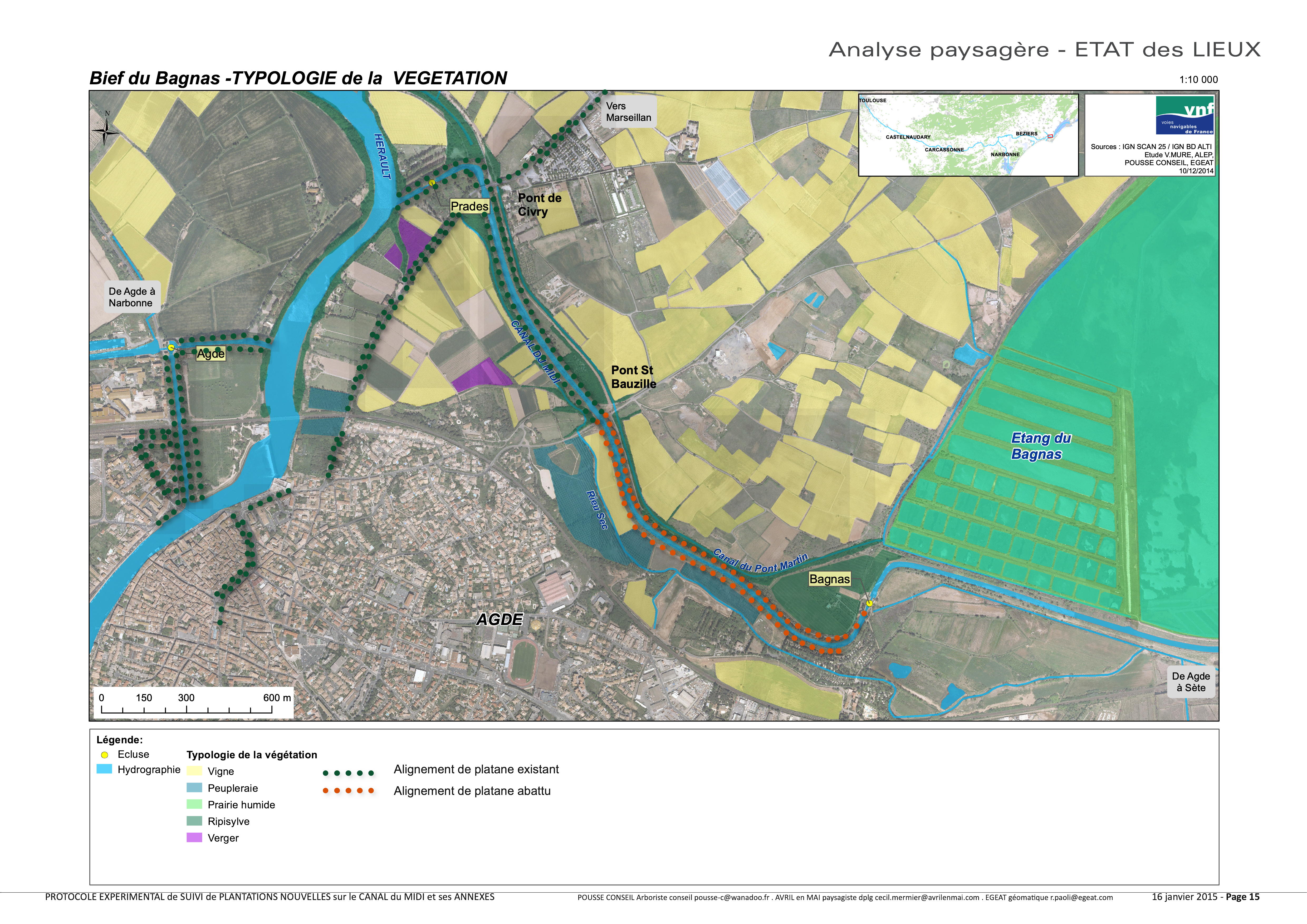 Canal du Midi - Étude paysagère sur le site pilote du bief du Bagnas pour les replantations, Hérault 34