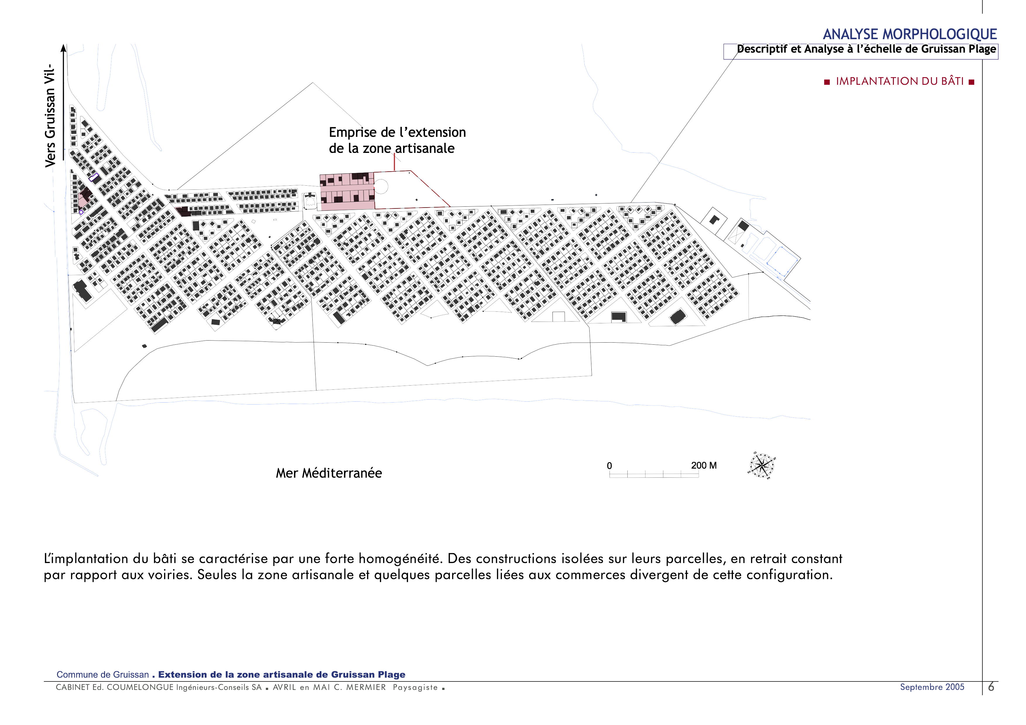 Élaboration d’un diagnostic du contexte dans lequel va prendre place l’extension du lotissement artisanal à l’échelle de l’entité Gruissan-Plage. Il s’agit d’une analyse morphologique se décomposant en :